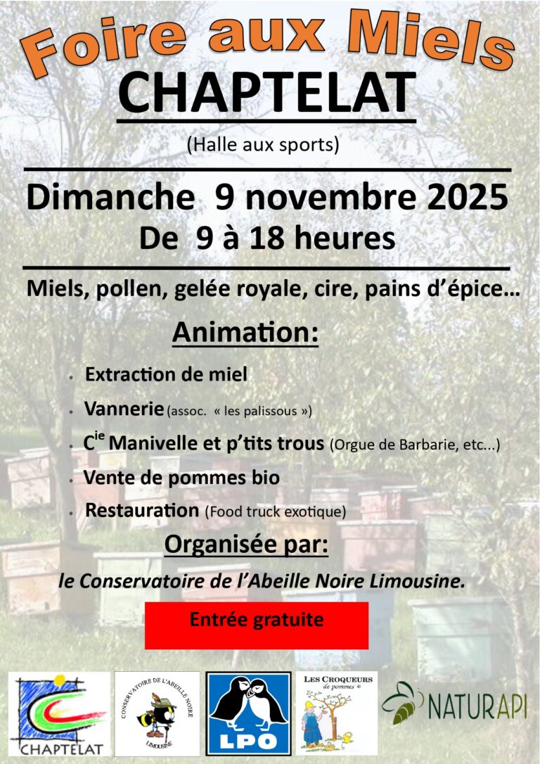 Nos manifestations Foire au miel – ChaptelatDate: 9 novembre 2025Entrée gratuite et libre ! En savoir + Journée de greffage (élevage de reine) – à Chaptelat (Haute-Vienne)Date: juillet 2025Adhésion obligatoire En savoir + Journée de greffage (élevage de reine) – au syndicat de l’abeille corrézienne (Brive)Date: juin 2025Adhésion obligatoire En savoir + Foire au miel – ChaptelatDate: 10 novembre 2024Entrée gratuite En savoir +